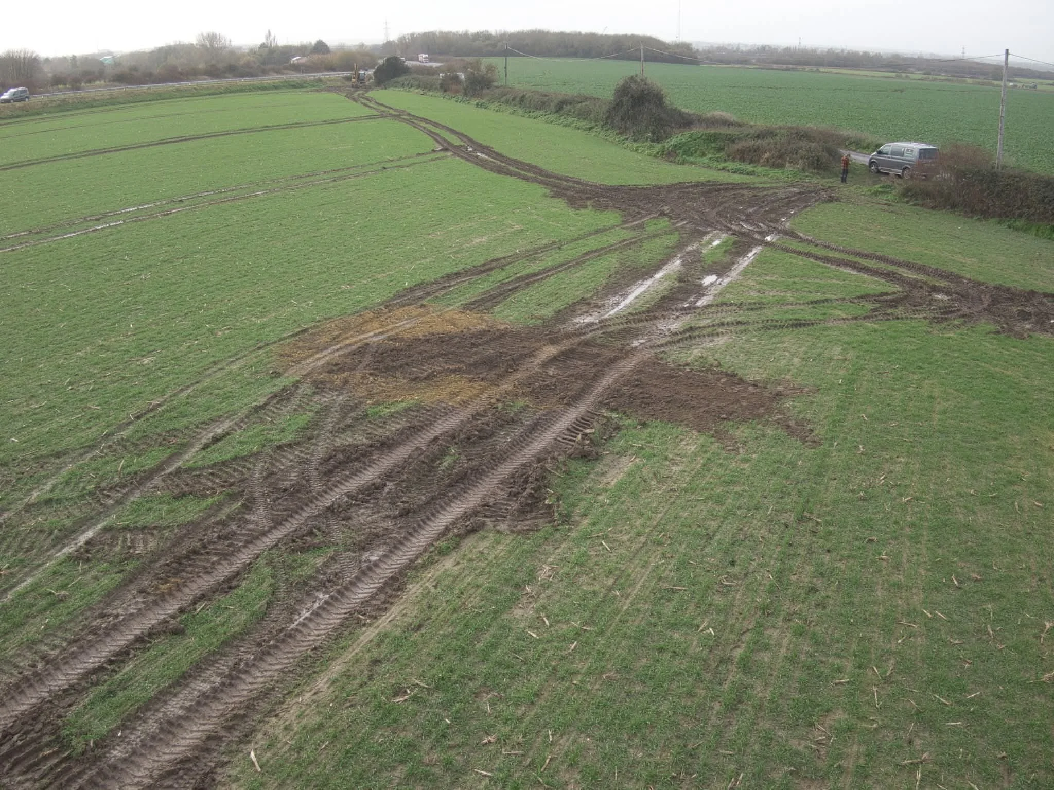 Archaeological pits excavated on the converter site in July 2024 for the Sea Link project, have not returned to their original condition, despite being returned to the farmer to continue farming.