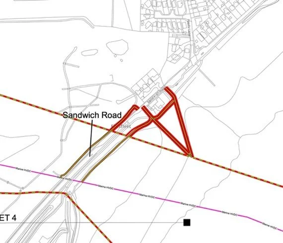 For clarity, the two access routes shown are either side of the petrol station at Pegwell with the left-hand route being adjacent to the scar left from the Nemo project.
